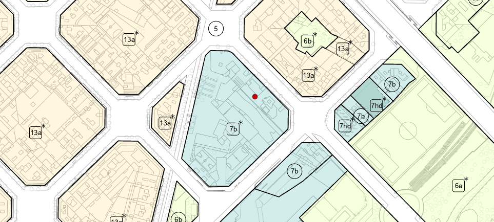 Seria molt fàcil comprar/expropiar sòl industrial a preu baix per part de l’administració (doncs no s’hi pot edificar res més que industria) i canviar la categoria urbanística a Equipament (7b o 7hd) per fer-hi Equipament Habitacional o Habitatge Dotacional d’una vegada assumint que cal una reflexió radical de l’accés a l’habitatge. El canvi a 7b i 7hd en comptes de categories directament residencials seria, alhora, un tallafocs per a l’especulació, doncs no seria mai sòl on poder edificar-hi habitatge, sinó equipament residencial, i aquí sí que començaríem a construir el contrapoder al segrest urbanístic que tan mal ens està fent. Amb aquesta estratègia administrativa sí que es podria edificar en antic sòl industrial, també permetria fer equipaments mixtos habitacionals + culturals o sanitaris, per exemple, fins i tot podrien funcionar de manera autònoma com ho fan les residències de gent gran. Un exemple claríssim és l’equipament mixte que conté escola + biblioteca + mercat + residència de gent gran al Fort Pienc, que, per si no fos prou clara la llibertat urbanística, dintre d’un sòl 7b hi ha una residència d’estudiants privada (Residència Onix, el punt vermell).