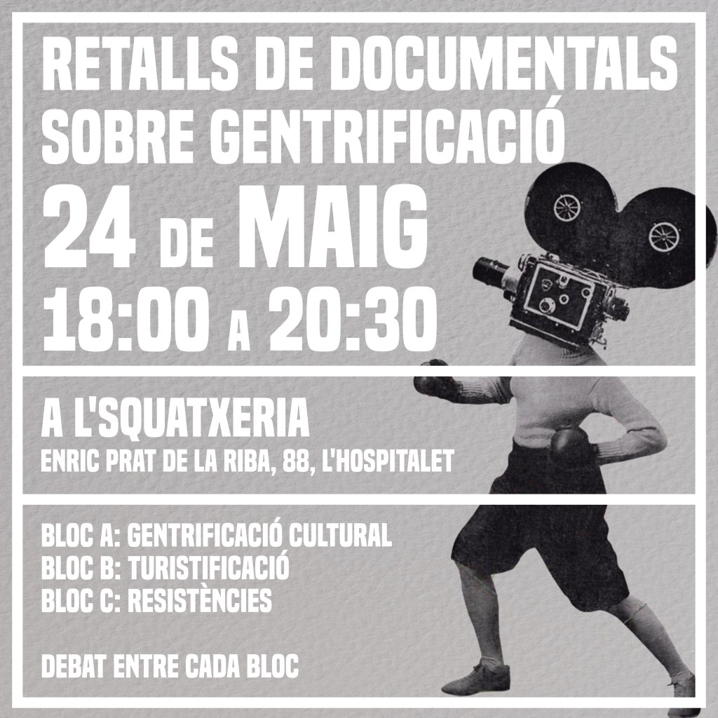 Aquests clips audiovisuals els vam elaborar amb el Centre Social Okupat i Autogestionat La Squatxeria, de l’Hospitalet, per les jornades contra la gentrificació que vam coorganitzar al Maig de l’any 2024.