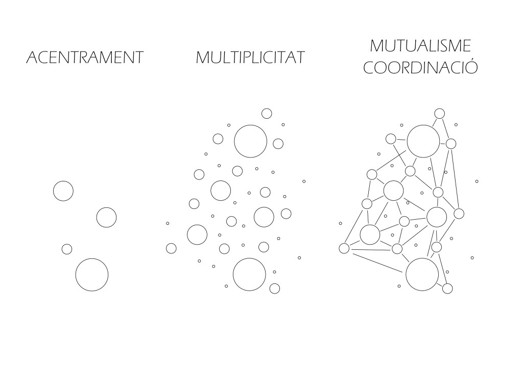Aquestes formacions «a-centrades», coordinades i multiplicitàries no són ni noves ni llunyanes, les trobem de sempre en la natura: